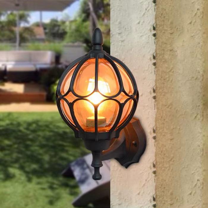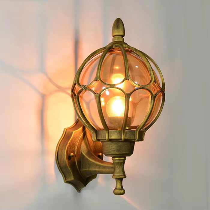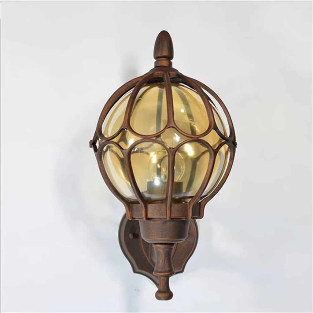 Disponível em três versões exclusivas — Bronze, Preto e Ouro Velho — a peça é confeccionada em liga de alumínio de alta resistência, com cúpula em vidro âmbar translúcido. Seu formato arredondado com detalhes decorativos valoriza fachadas, varandas, corredores externos e até entradas de vilas ou hotéis, criando uma iluminação acolhedora e marcante.