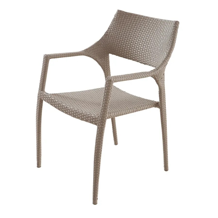 Com acabamento em rattan sintético no tom Bronzetaupe, a Miramar traz um toque contemporâneo e natural, harmonizando-se a decks, varandas e áreas gourmet. Seu design clean valoriza composições com mesas de alumínio, madeira ou vidro.